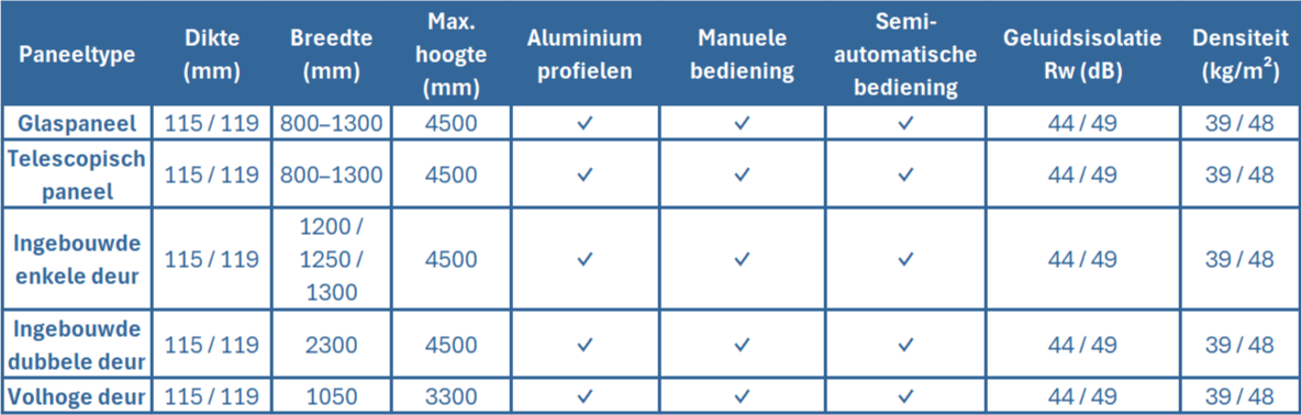 Aqua is beschikbaar als dubbelbeglaasd verplaatsbaar wandsysteem, voorzien van optionele ingebouwde deurpanelen en telescopische eindstukken. De akoestische prestaties worden verzekerd door semi-automatische dichtingen, die eenvoudig worden geactiveerd met een sleutelschakelaar nadat de panelen in positie zijn gebracht.