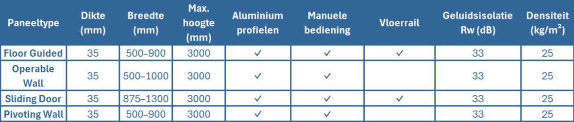 Dankzij de slimme constructie en stille, soepele bediening laat het systeem zich moeiteloos verplaatsen en herconfigureren. Of het nu gaat om een vaste opstelling of een verplaatsbare wand, met of zonder geïntegreerde deur, Vista past zich naadloos aan elk project aan.